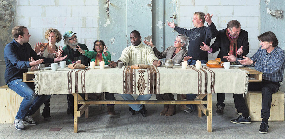 Familiare ma drammatico… per Gesù. Lui è infatti l’unico a percepire il dramma, che dunque porta da solo. I suoi non sono ancora fuggiti, ma comprendono poco o nulla di quanto sta accadendo. Lo dimostra Pietro, con le sue parole fuori luogo; e gli altri con il loro silenzio, ancora più sconcertante.