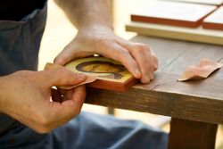 Besides icons, the workshop produces also wooden crosses, by use of fine solid wood, such as mahogany, olivewood, rosewood... Crosses are of two types: