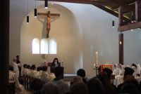 Al termine della lettura del messaggio di fr. Enzo inizia l’ora media. È la preghiera a metà del giorno, segnata, in questa settimana che ci sta portando a festeggiare la Pentecoste, da salmi di lode, e che oggi in presenza del patriarca è celebrata con alcune particolarità tra cui la proclamazione del vangelo di Giovanni in cui si invoca l’unità di tutti i credenti, e con il canto del Padre nostro. La preghiera si conclude con la solenne benedizione che il patriarca impartisce a tutti i presenti.